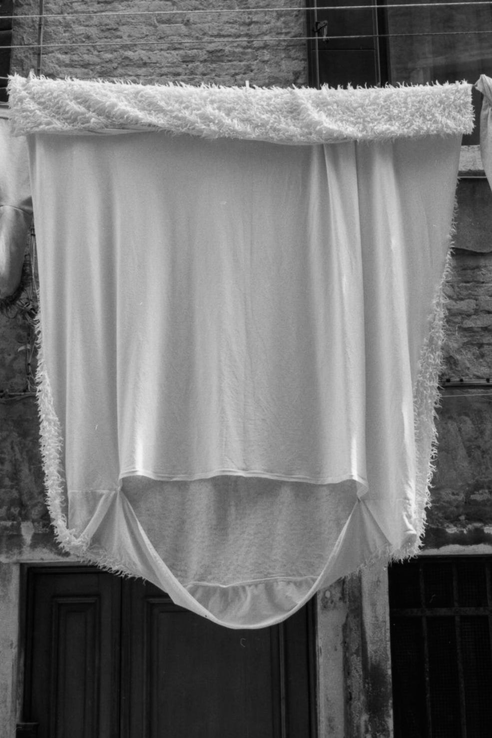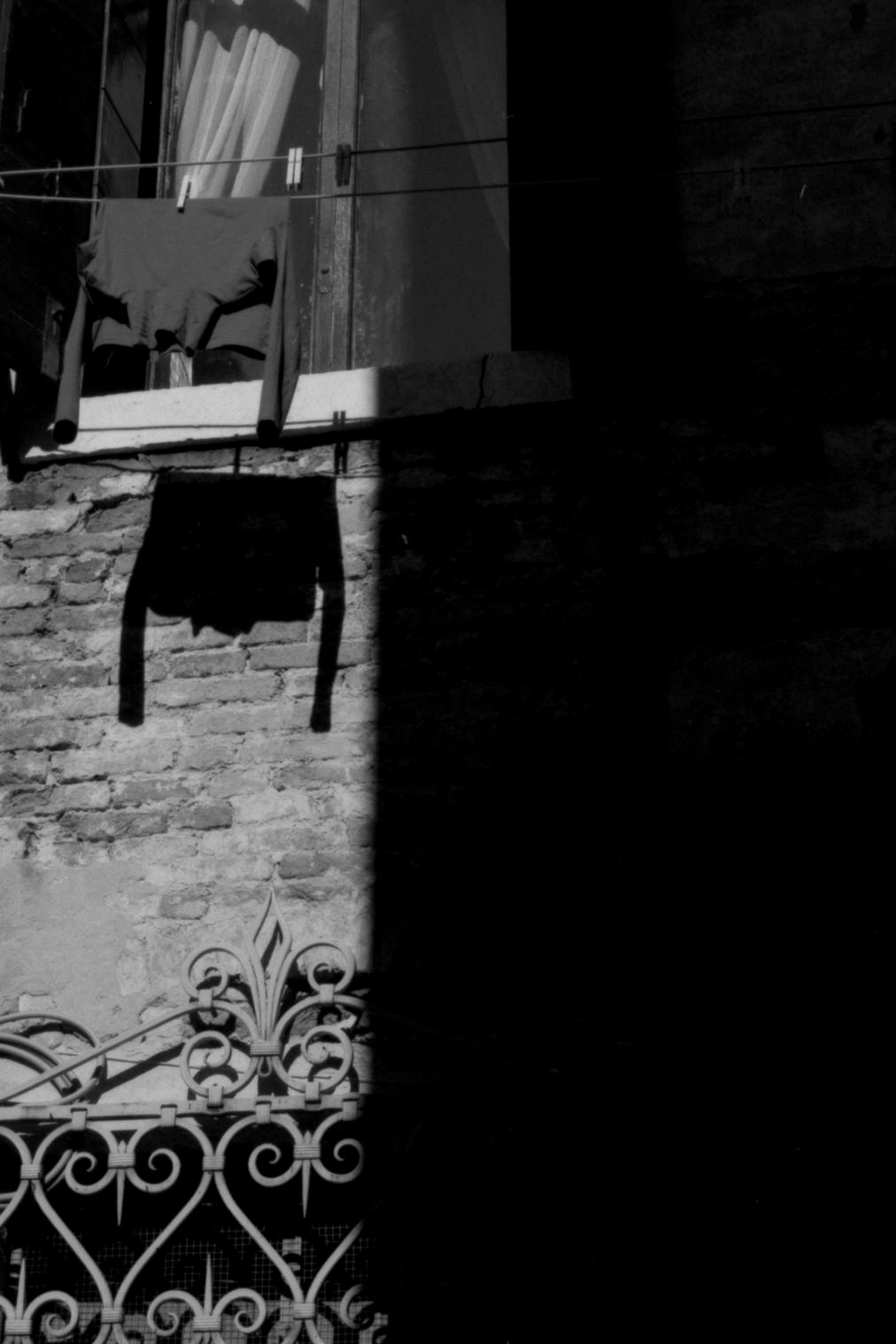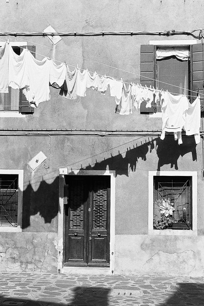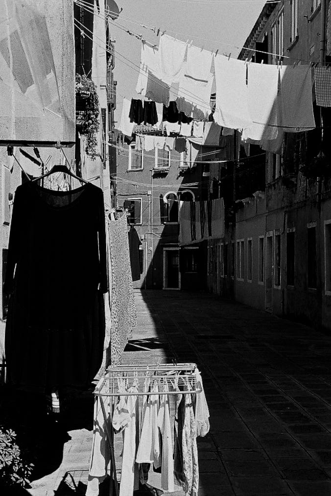 It is a well known fact: Every photographer loves a great laundry shot. The play of light and shadow. Unusual shapes. Whether in colour, or black + white. It is near impossible to make photographs of Venice that have not already been done. I have about 2000 negatives of Venice spanning near 40 years. Some of these have laundry in them. In fact, a lot of laundry has been eternalised on my negatives.